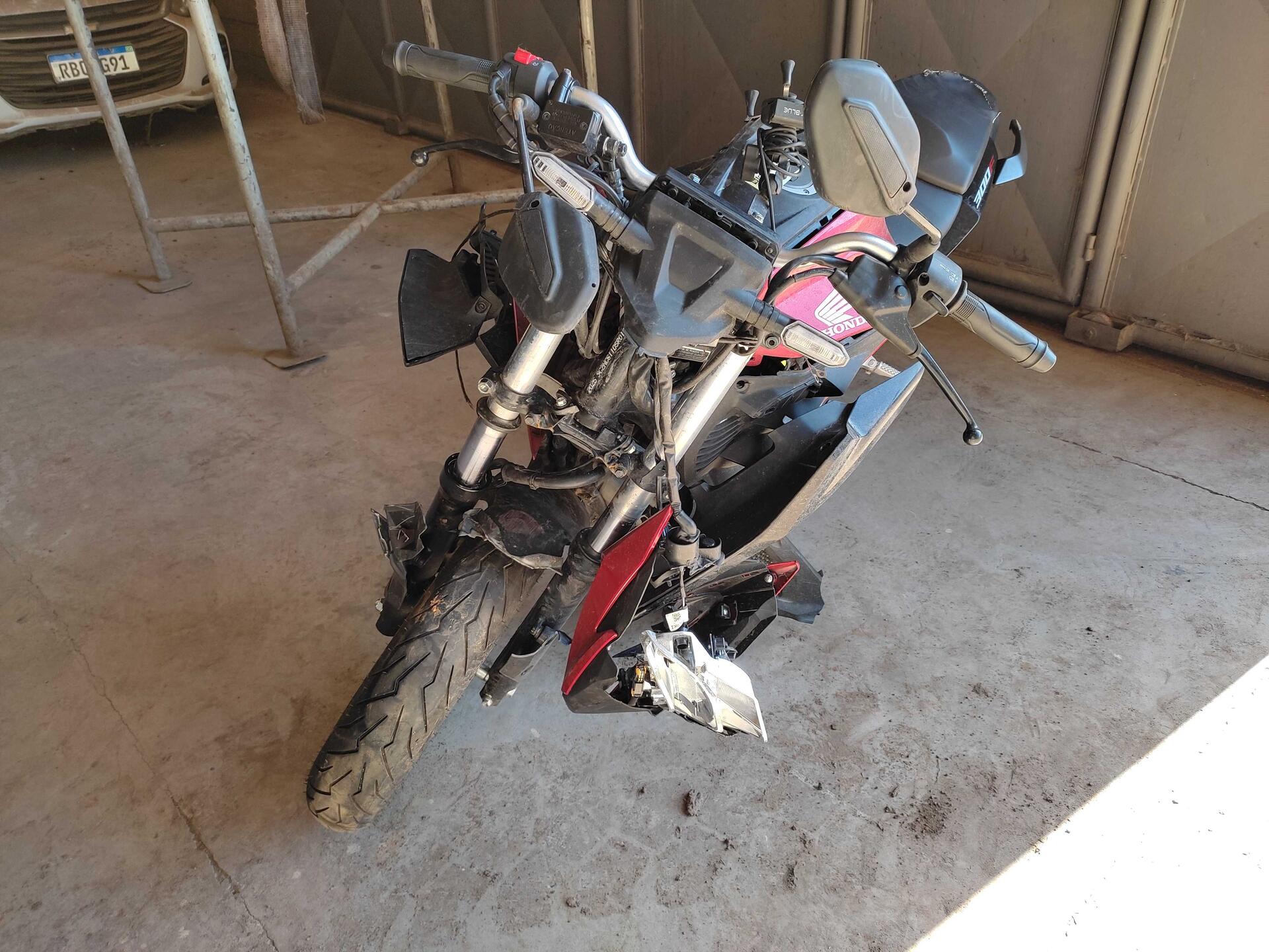 PLACA T*****7 / CHASSI 9C2NC6110SR013171 / RENAVAM 1427700947 / KM - INDEFINIDO COMBUSTÍVEL / BICOMBUSTÍVEL / COR VERMELHA / IPVA PAGO: 2026 / CAUSA: COLISÃO / LCD: MÉDIA MONTA