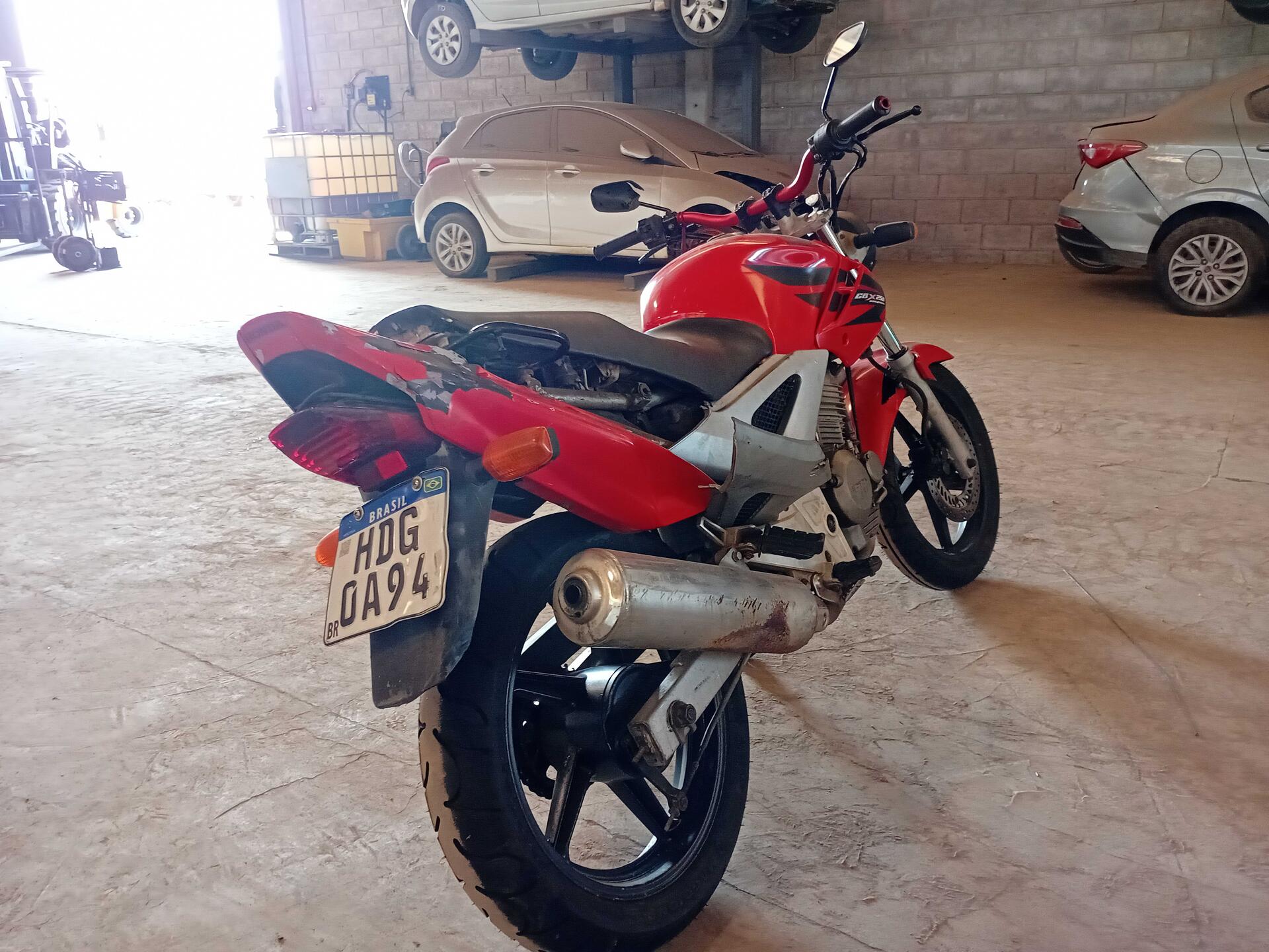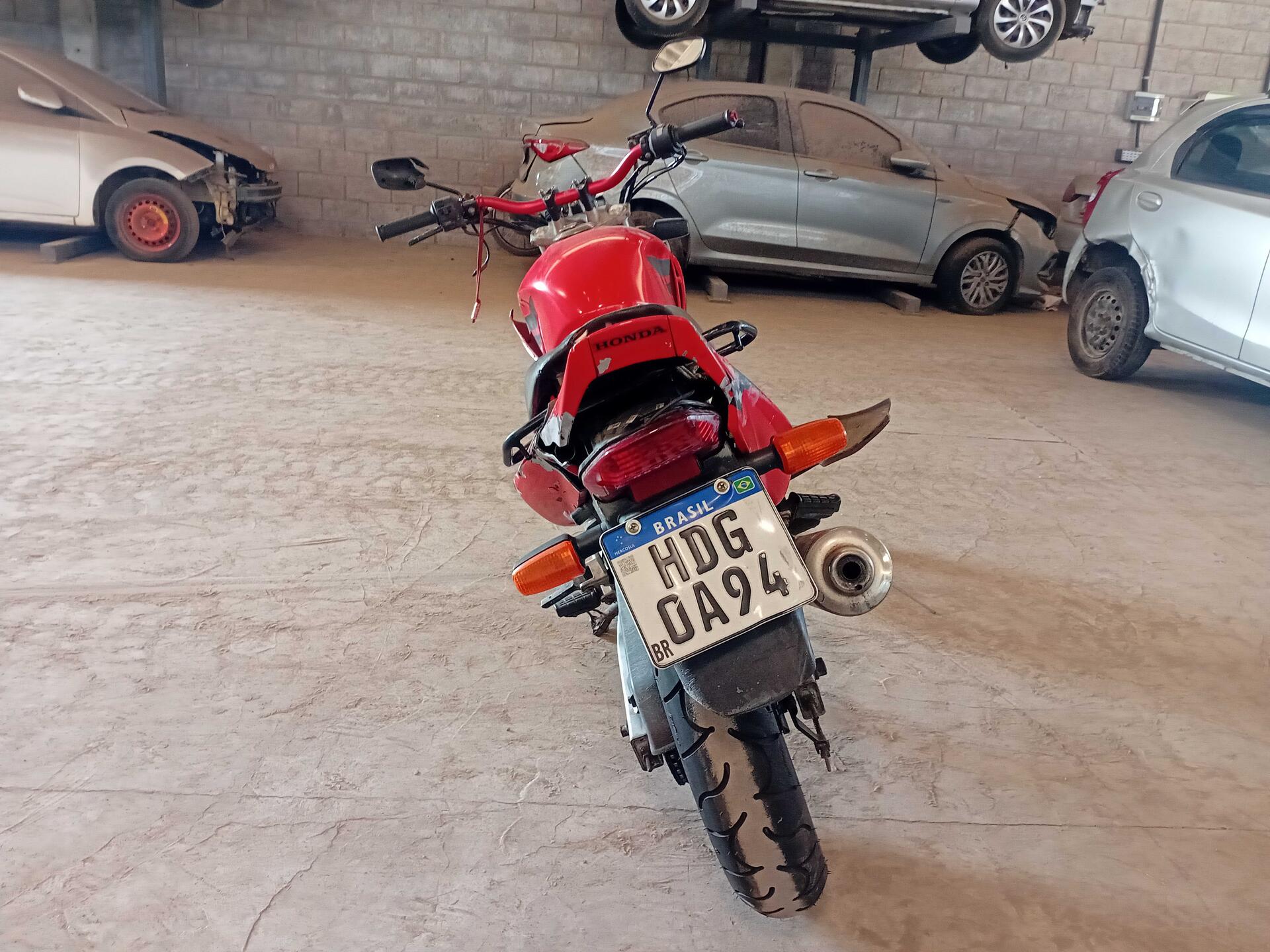 COR: VERMELHA, GASOLINA, PLACA: HDG0A94, CHASSI: 9C2MC35007R013298, RENAVAM: 00905097726, MÉDIA MONTA